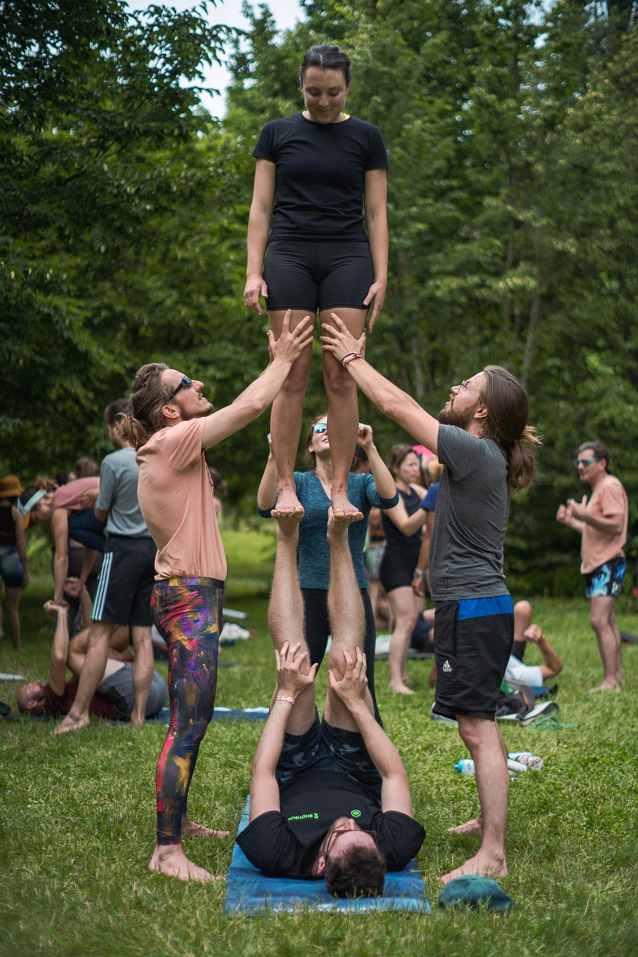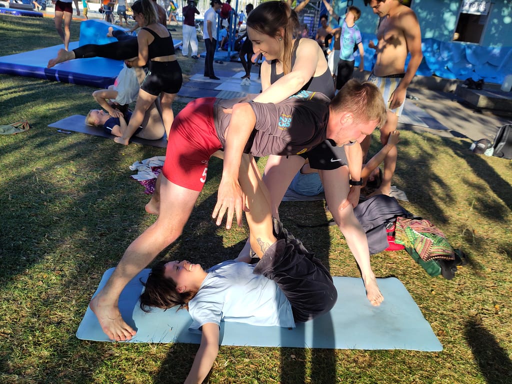 L’acroyoga est une pratique en groupe (binôme, trinôme), et communautaire.