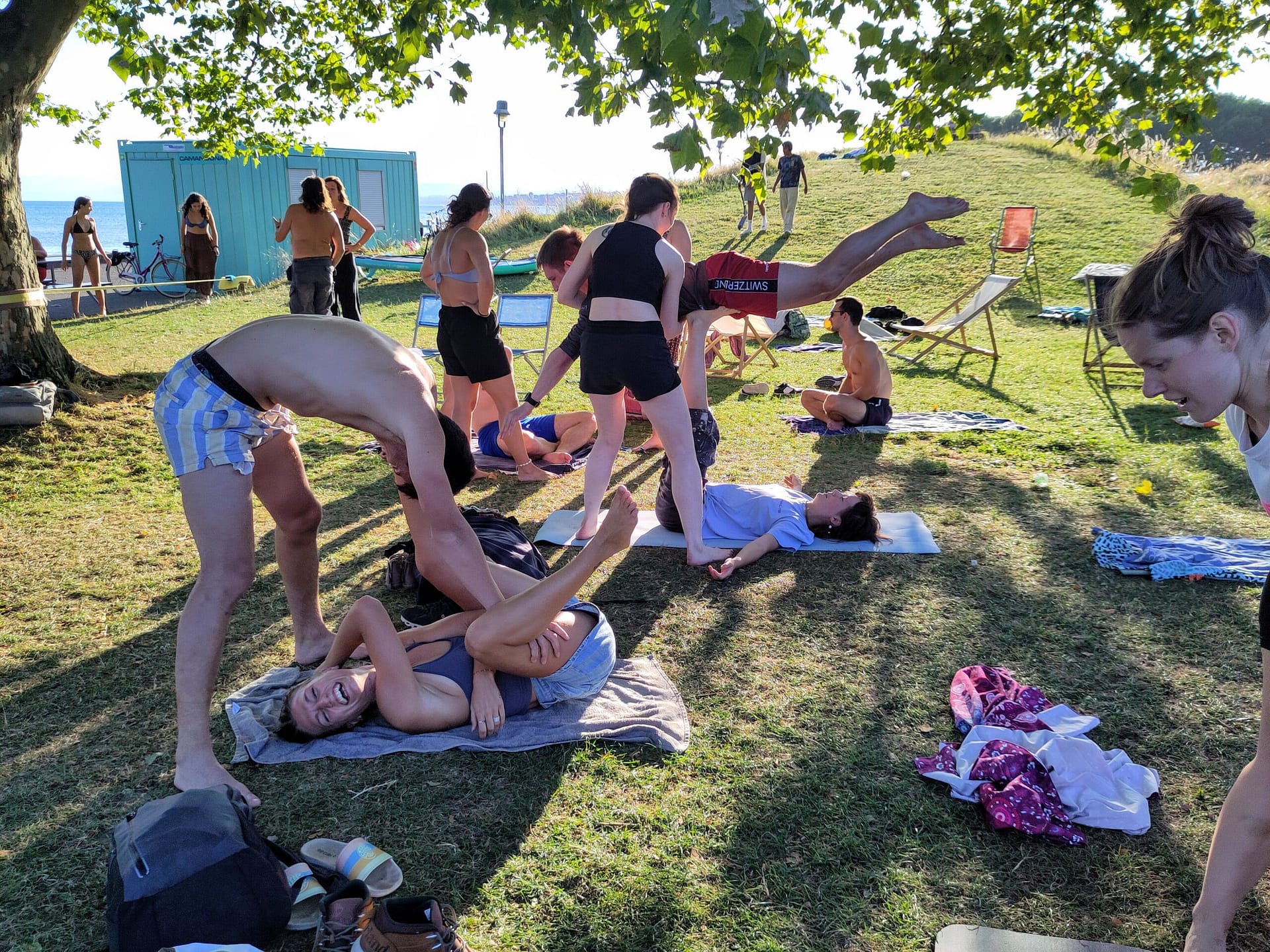 -> Chaque année entre Avril et Octobre, se déroule la saison des « Reçoit ». Ce sont des évènements gratuits et organisés par les associations d’acroyoga, qui accueillent tout le monde, et notamment les Acroyogis des autres communautés de francophonie. Pendant 2 ou 3 jours, un programme mélangeant ateliers, jams, niveau débutant, intermédiaire et avancé, solaire et lunaire, yoga et assouplissement, est proposé, gratuitement, au bénéfice de toute la communauté francophone. Une bourse au lit est organisée pour héberger les personnes venant d’ailleurs, et des stands de nourriture à prix modeste sont organisés.